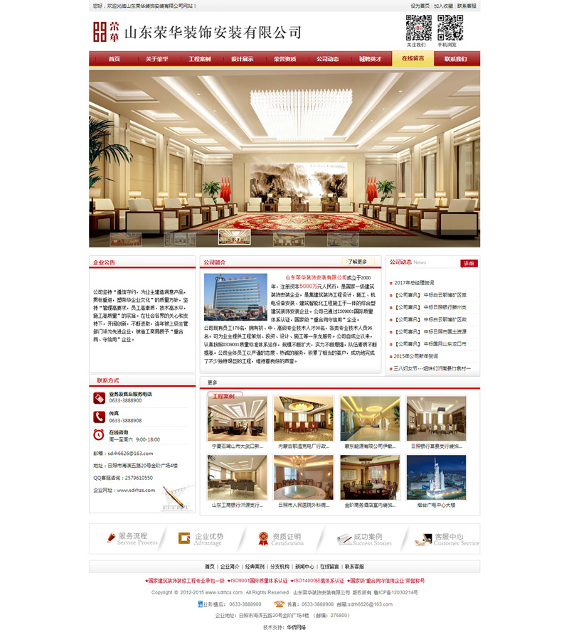 公司自成立以來,認(rèn)真按照ISO9001質(zhì)量標(biāo)準(zhǔn)體系運(yùn)作,規(guī)模不斷擴(kuò)大,實力不斷增強(qiáng),隊伍素質(zhì)不斷提高。公司全體員工以嚴(yán)謹(jǐn)?shù)膽B(tài)度、熱誠的服務(wù),積累了相當(dāng)?shù)目蛻簦晒Φ耐瓿闪撕芏嗥D巨的建筑安裝工程,維持著良好的聲譽(yù)。公司尊重知識,尊重人才,開發(fā)技術(shù)力量,依靠科技進(jìn)步,創(chuàng)造自己的企業(yè)文化,激發(fā)員工的向心力和凝聚力。建立起了完善的集設(shè)計、施工、銷售、服務(wù)等為一體的時常經(jīng)營體系。同時,不斷加強(qiáng)企業(yè)內(nèi)部管理,實現(xiàn)了公司電腦網(wǎng)絡(luò)化管理。塑造品牌,重視信譽(yù),嚴(yán)把質(zhì)量關(guān),形成了一整套完善的施工管理和質(zhì)量保證體系,使榮華形成了一支凝聚力強(qiáng),能夠立足山東,面向全國,高瞻遠(yuǎn)矚,積極向上的集體。“做精品工程,創(chuàng)榮華品牌”的經(jīng)營理念使榮華的事業(yè)蒸蒸日上.我公司先后在省內(nèi)外承接了金階商務(wù)酒店室內(nèi)裝修工程、山東淄博市工商銀行沂源、南定、洪溝、臨淄、桓臺、胡田、王舍、唐索路等分理處室內(nèi)外裝飾工程、寧夏石嘴山市大武口新區(qū)行政及文化中心裝飾工程、蒙東能源有限公司伊敏河?xùn)|礦區(qū)第一煤礦辦公樓及宿舍樓裝飾工程、內(nèi)蒙古鄂溫克發(fā)電廠行政辦公區(qū)及輔助生活區(qū)裝飾工程、日照市人民醫(yī)院外科病房樓及生活服務(wù)中心室內(nèi)裝飾工程、山東省日照銀行莒縣支行辦公樓裝飾工程、安徽省合肥市安徽移動大廈辦公樓室內(nèi)裝飾工程、山東日照市工商銀行市中分理處、山東省博物館新館(通風(fēng)空調(diào)安裝工程)、河南省人民醫(yī)院(通風(fēng)空調(diào)安裝工程)、山東大廈賓館樓(空調(diào)系統(tǒng)及主供電系統(tǒng)安裝工程)、西安海關(guān)緝私辦公大樓(裝飾、空調(diào)工程)、西安中建西北設(shè)計院(安裝及部分裝飾工程)、日照市人民醫(yī)院特需病房樓(智能化安裝工程)、日照市會展中心(音響視頻會議系統(tǒng)設(shè)計及安裝調(diào)試工程)、日照永發(fā)房地產(chǎn)風(fēng)景水岸花園G5#G6#(外墻保溫屋面保溫工程)等大、中型室內(nèi)外裝飾安裝工程共40余項,完成的工程涵蓋黨政、金融、企業(yè)、酒店、醫(yī)院、房地產(chǎn)類等眾多領(lǐng)域。工程一次驗收合格率達(dá)100%,優(yōu)良率達(dá)96%。